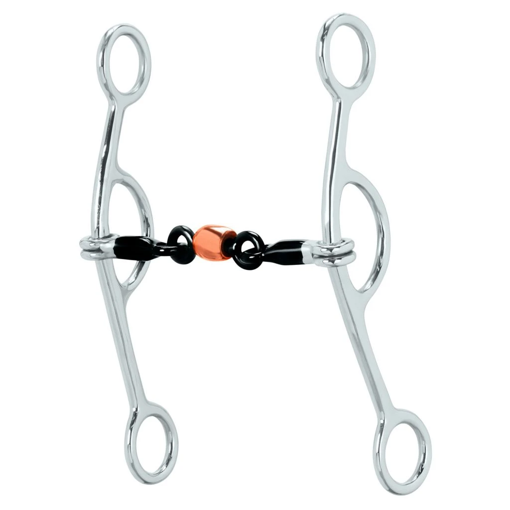 This stainless steel gag bit features a 5 in. sweet iron mouth with copper roller and 8 in. cheeks.