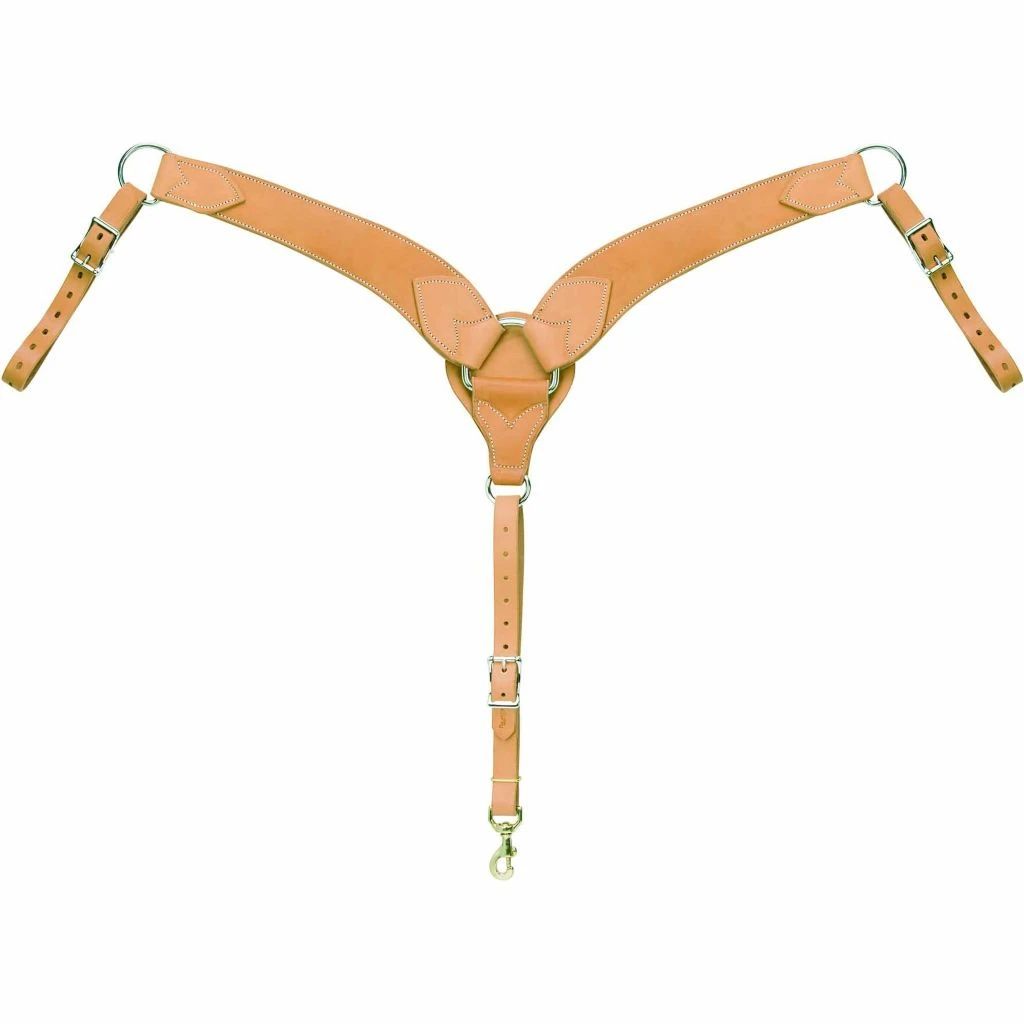 - Roper-style leather breast collar features a center dee with leather backer