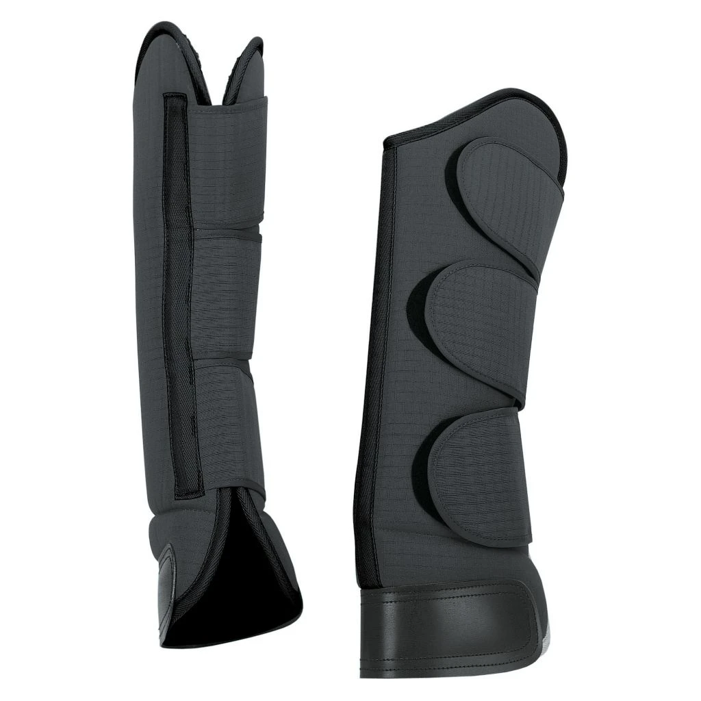 - Black, full-length horse shipping boots