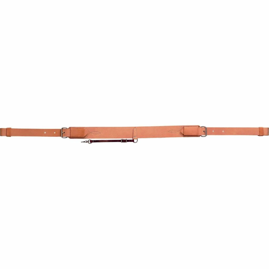Keep your saddle from lifting with our single-ply skirting leather back cinch. Includes 2 in. wide billets, burgundy latigo leather girth connector strap, nickel plated hardware and roller buckle. Cinch measures 3 in. wide.