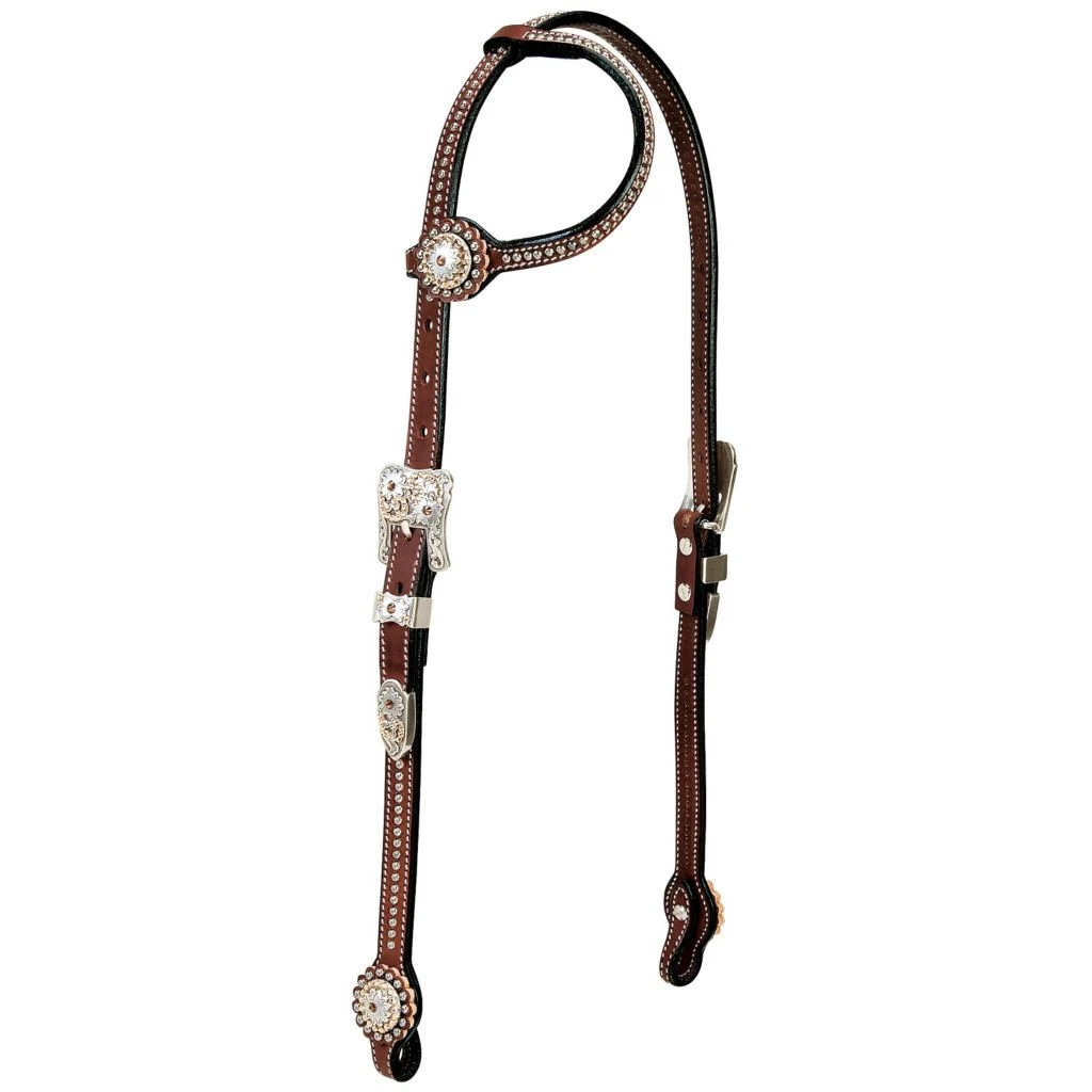 - Smoothed, darkened leather edges and wheat-colored thread provide a look that’s perfect for the show ring